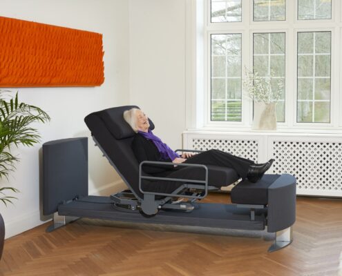 Die letzte Herausforderung für viele Nutzer wird darin bestehen, in eine stehende Position zu kommen, was ohne Hilfe relativ viel Muskelkraft erfordert. Überanstrengte Knie oder Hüften verschlimmern das Problem. Bei einem RotoBed® mit Höhenverstellung wird die Bewegung deutlich erleichtert.