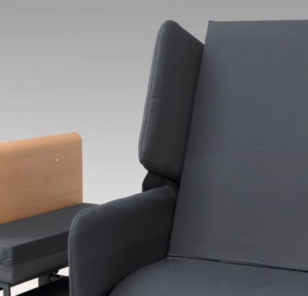 Textile cover for metal side rails. Anthracite grey. Hides the rails and protects users suffering from motoric unrest. Covers both rails in one side. Quality fabric from Danish company Kvadrat, made of 51% recycled plastic. Washable at 60°c.