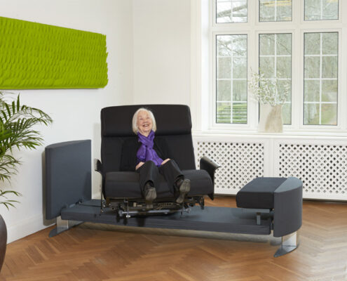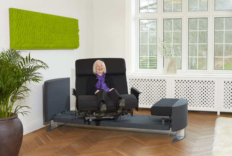 O último desafio para muitos utilizadores será chegar à posição em pé, que sem ajuda requer uma força muscular relativamente grande. Joelhos ou quadris tensos agravam o problema. Com uma RotoBed® com ajuste de altura, o movimento é significativamente facilitado.